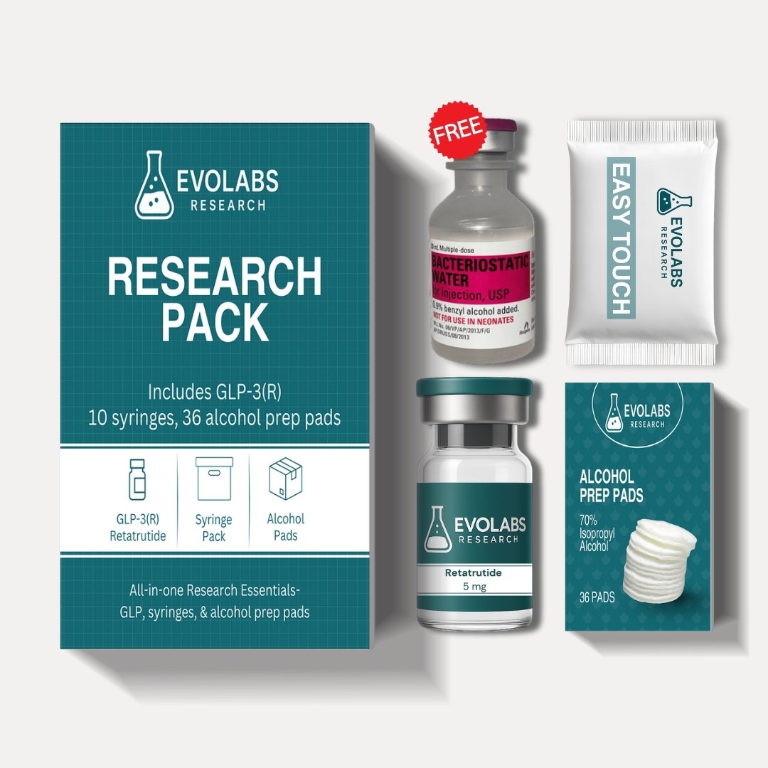 The GLP-3 (R) Research Pack is designed for advanced investigations into energy balance, weight regulation, and metabolic pathways. As a novel multi-receptor agonist (GLP-1, GIP, and glucagon), Retatrutide offers researchers a unique opportunity to study its role in obesity, glucose control, and regenerative health. Each pack includes 10 precision syringes and 36 alcohol prep pads—providing a complete research-ready set.